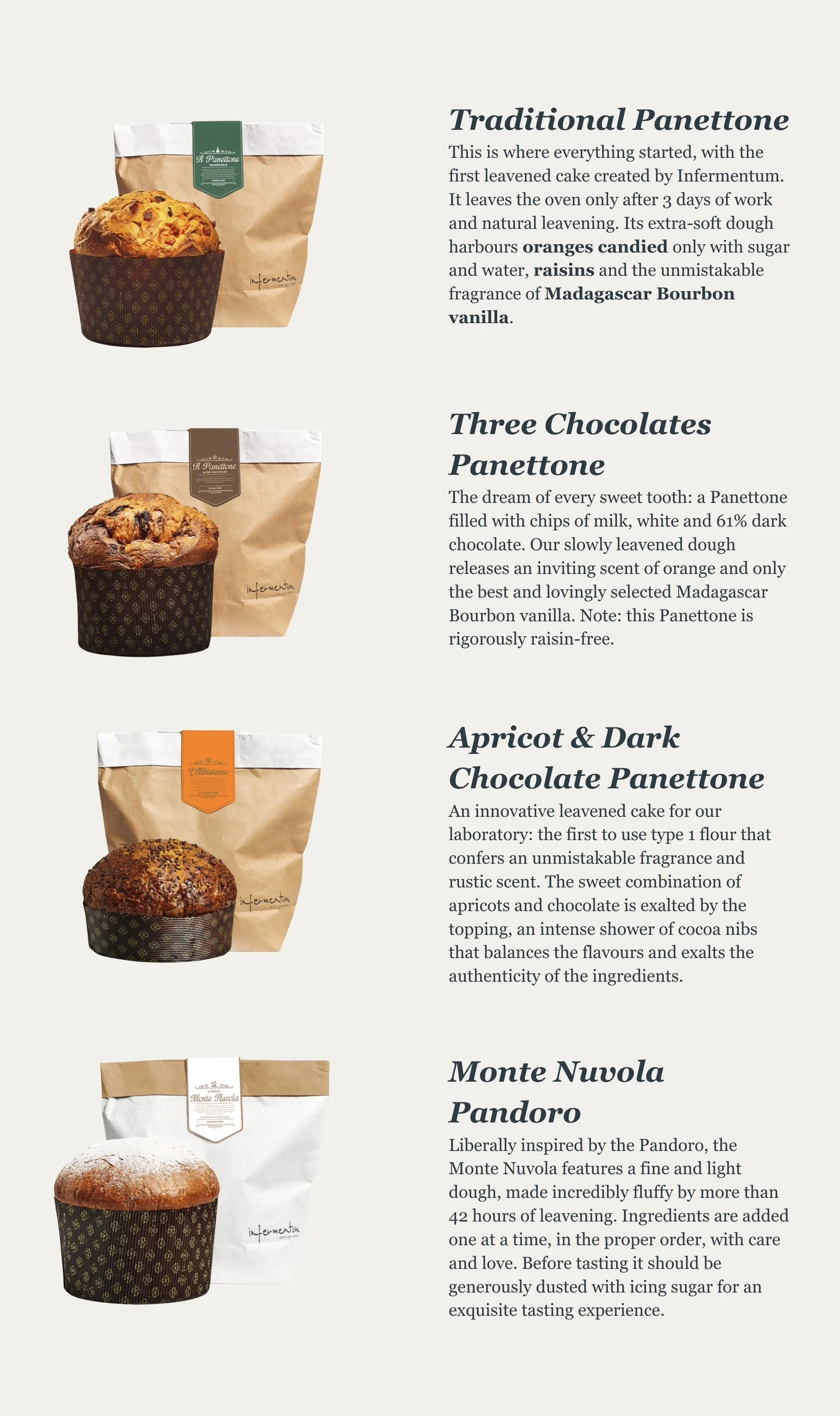 The holiday season is here, and we’re excited to share something special with you! We’ve brought in a limited selection of high-quality panettone and pandoro, beautifully crafted by Infermentum and imported from Verona, Italy.